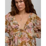 ABO Snoopy Fall Leaves Plush PJ Shirt – Brown