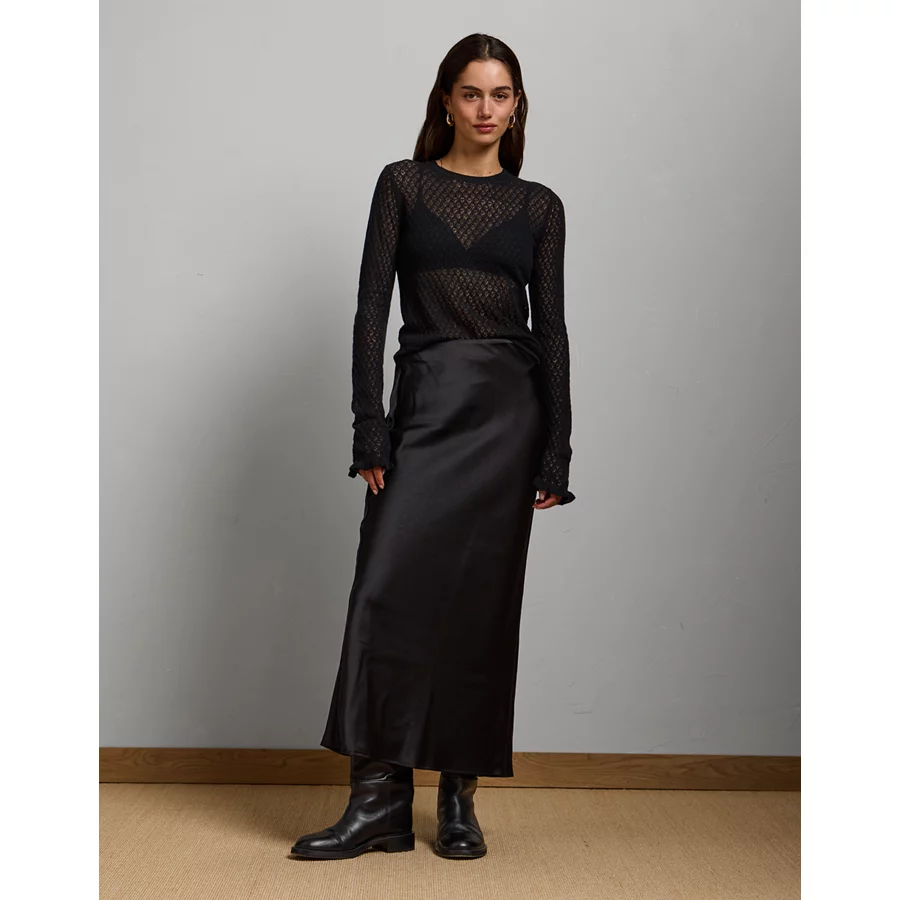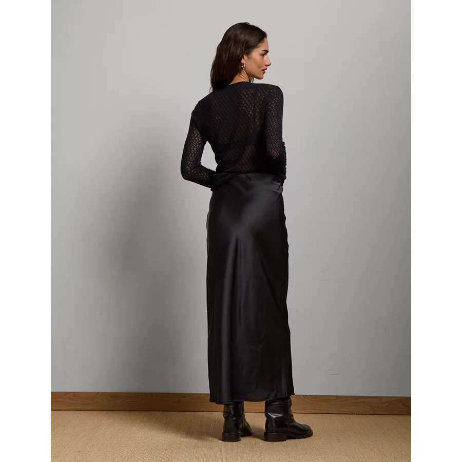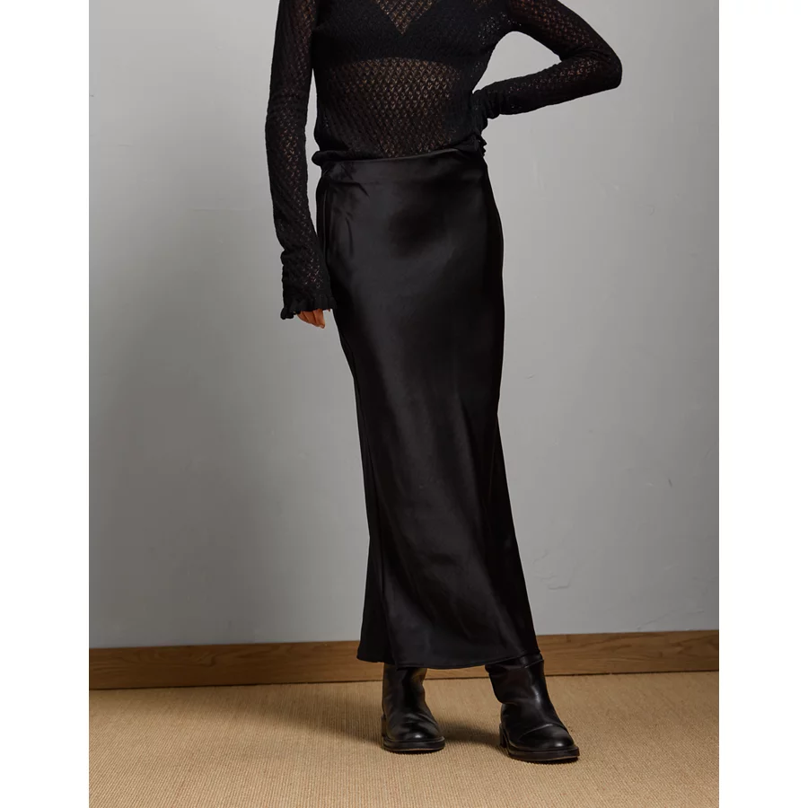 AE77 Premium Satin Slip Skirt – Black