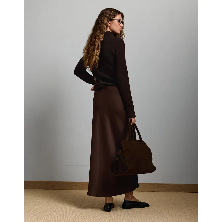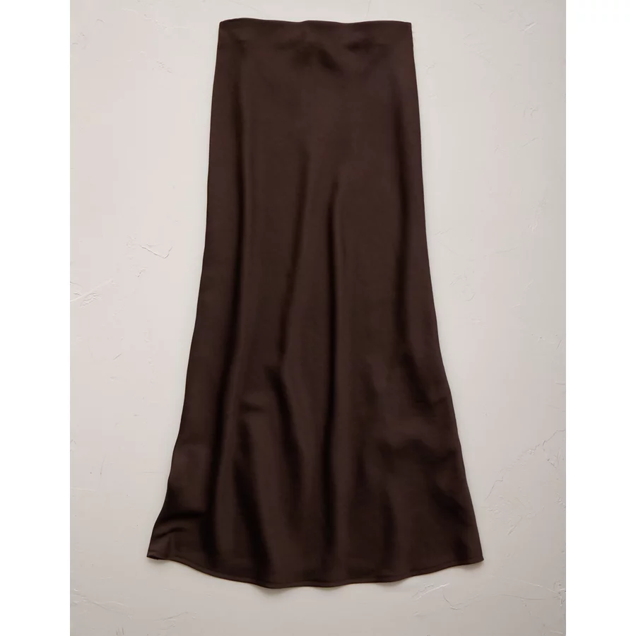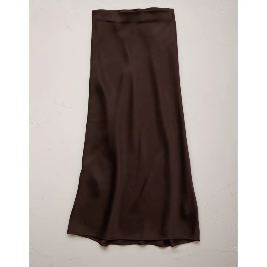 AE77 Premium Satin Slip Skirt – Dark Brown