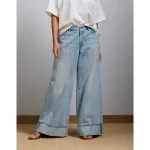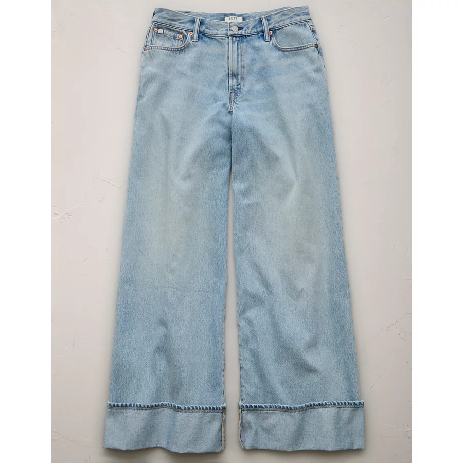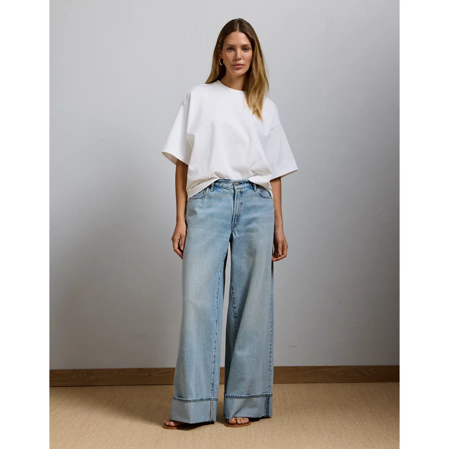 AE77 Premium Super Wide Cuffed Jean – Light Wash