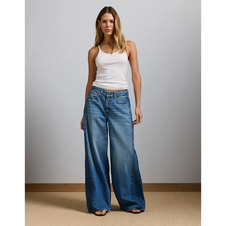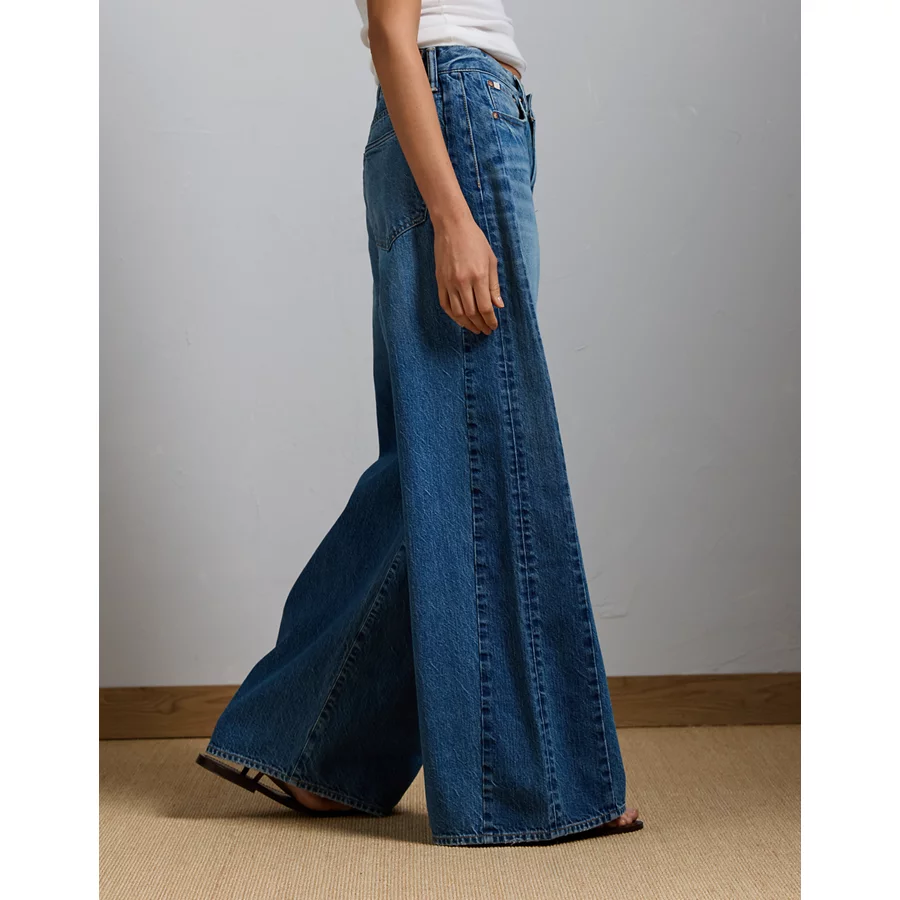 AE77 Premium Super Wide Side Stripe Jean – Medium Wash