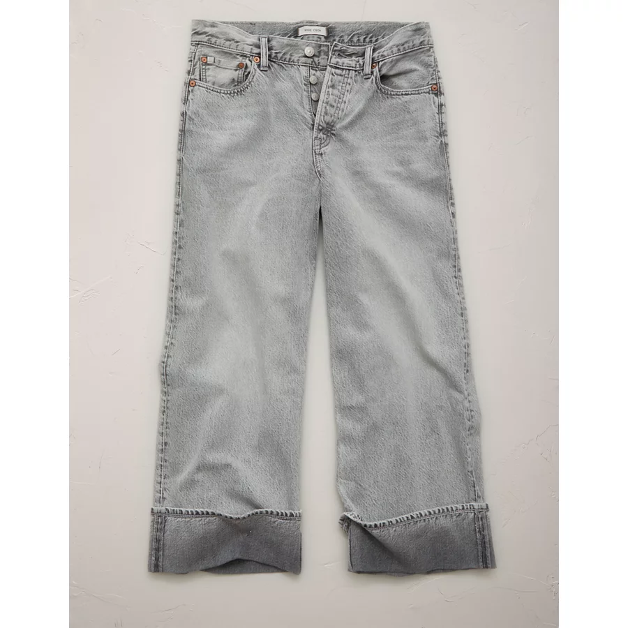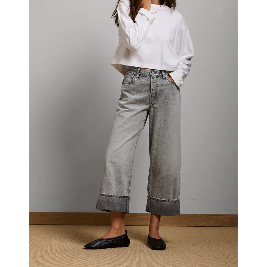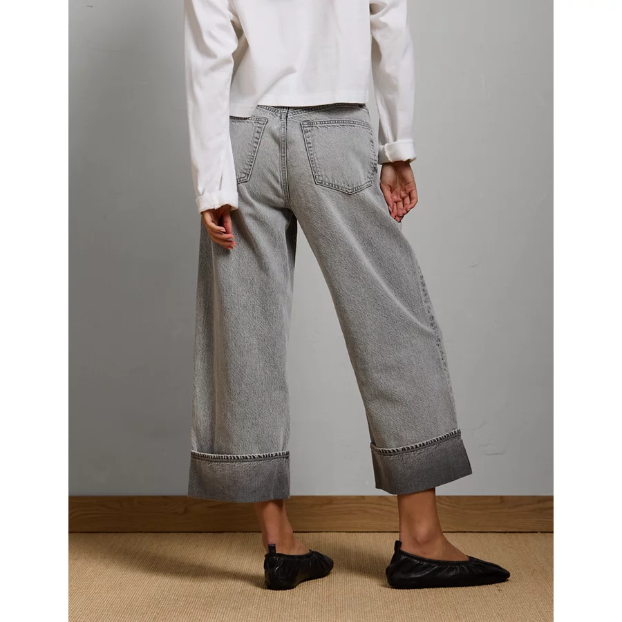 AE77 Premium Wide Crop Cuff Jean – Grey