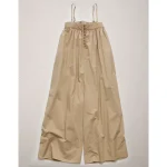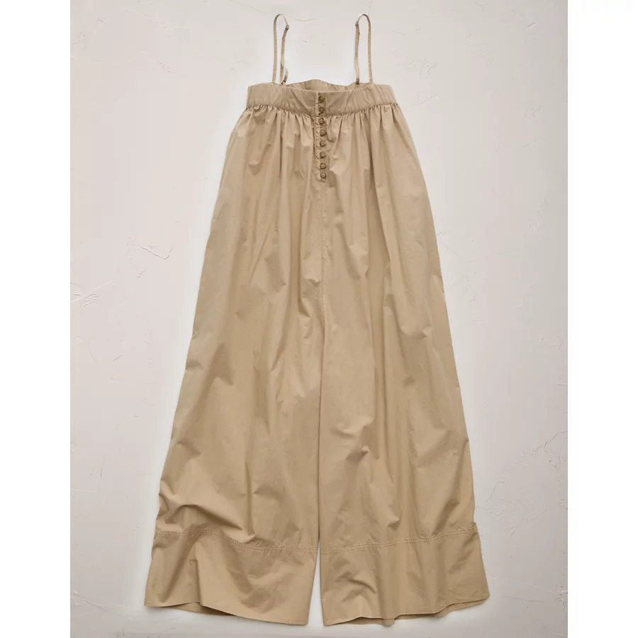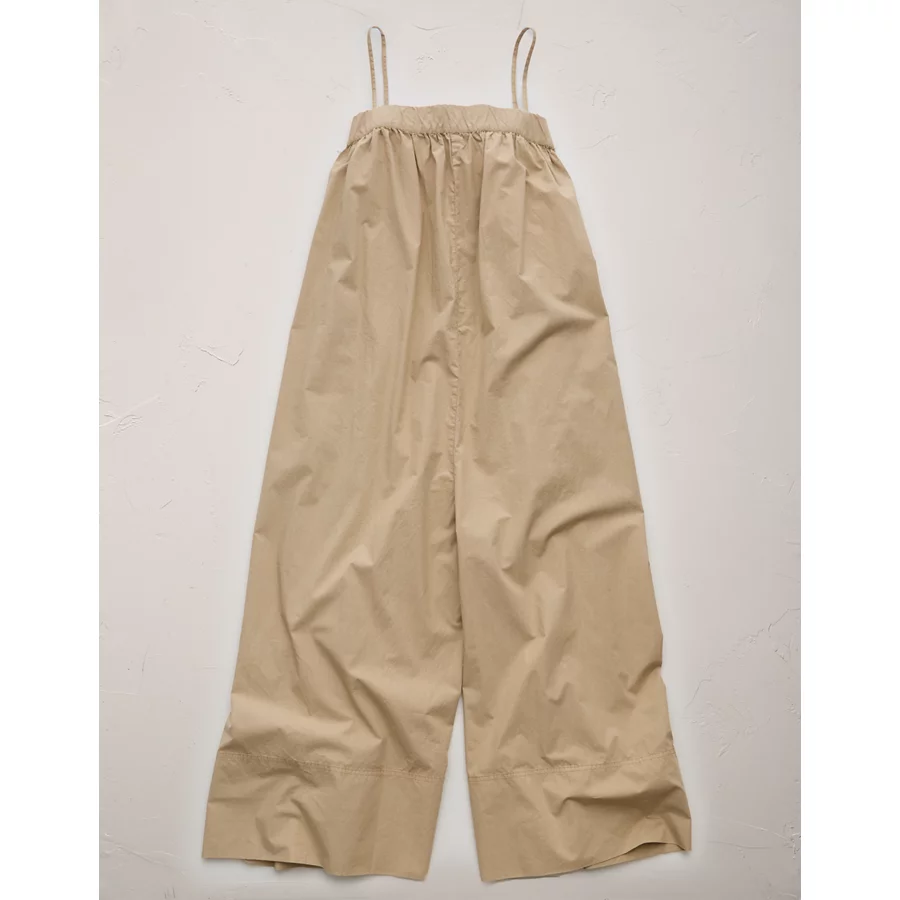 AE77 Premium Wide-Leg Cropped Poplin Jumpsuit – Khaki