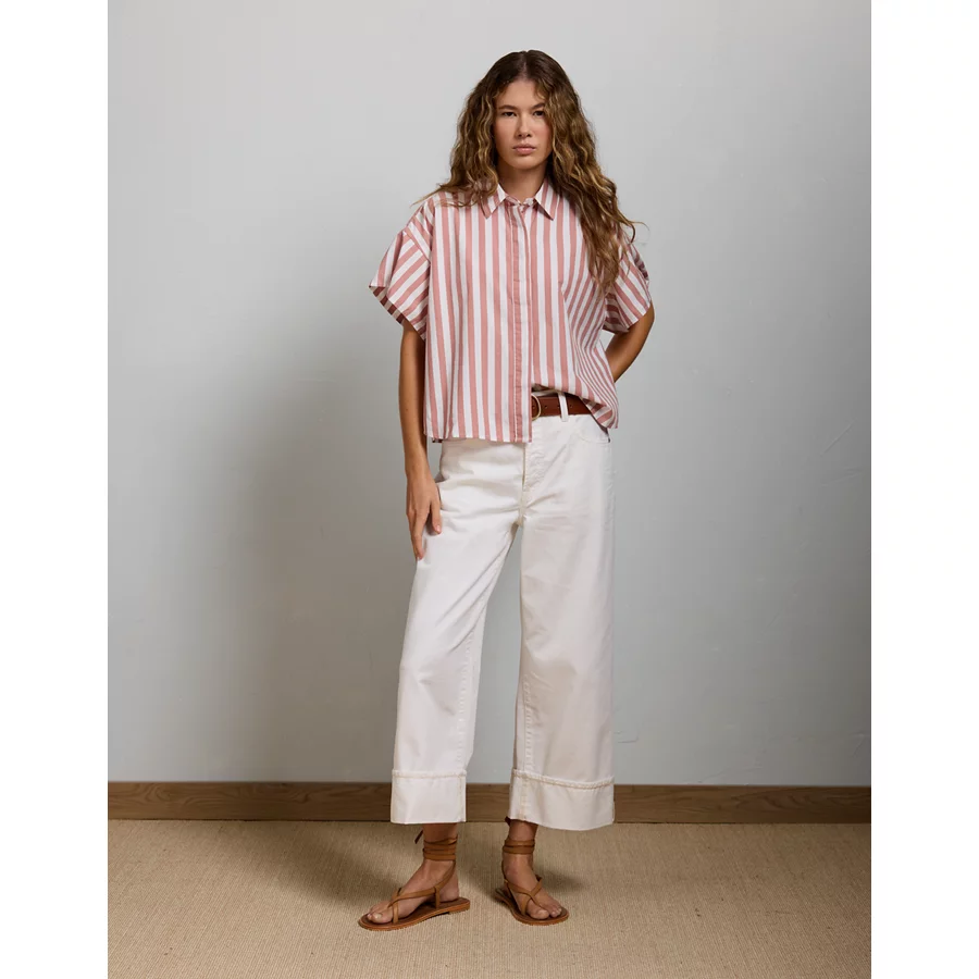 AE 6″ Stretch High-Waisted Pleated Trouser Short – Vintage Vanilla