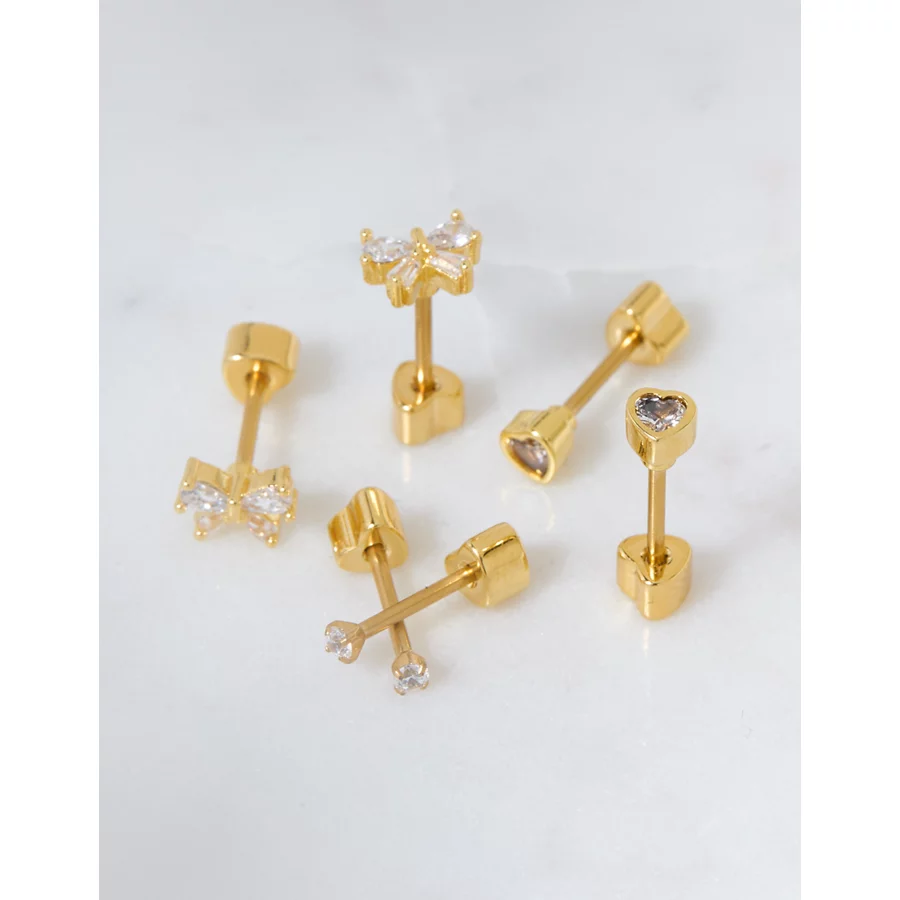 AEO Keepers Collection 14K Gold-Plated Stud Earrings 3-Pack – Gold