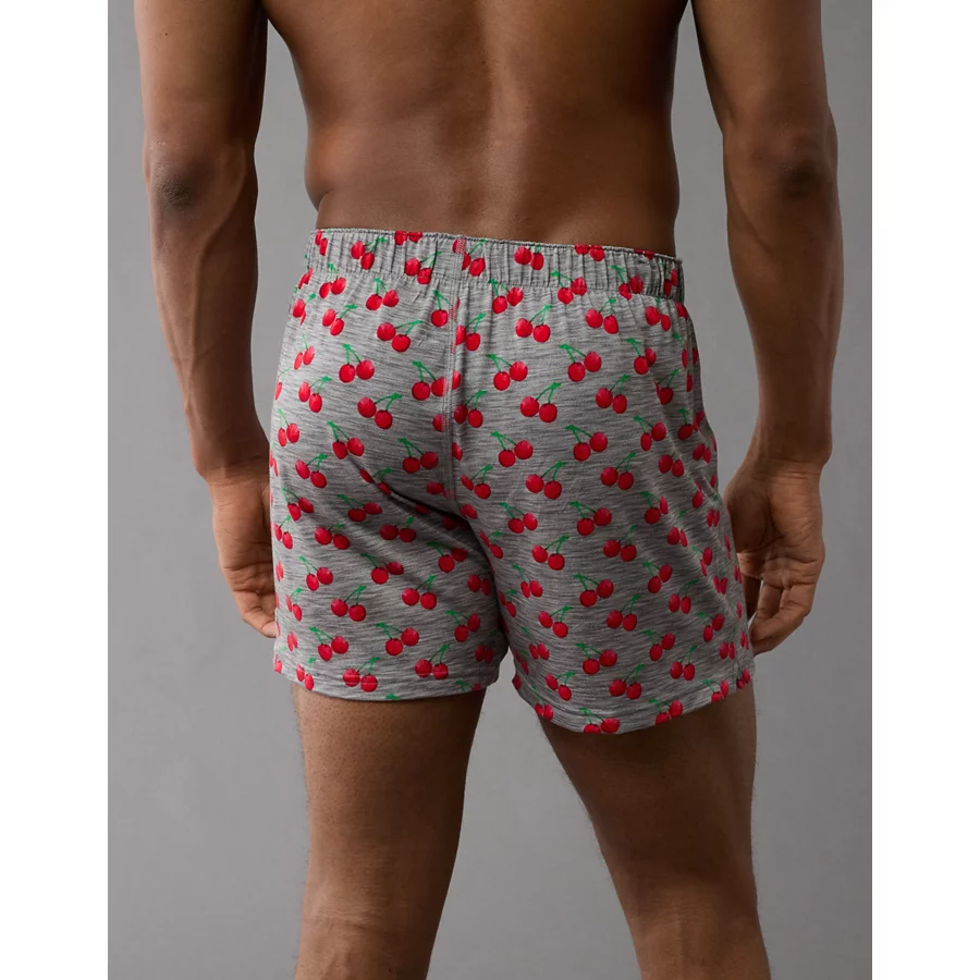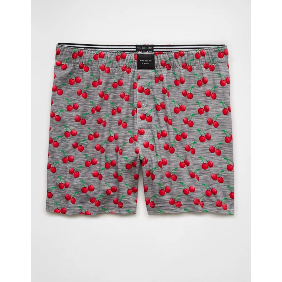 AEO Men’s Cherries Slim Knit Ultra Soft Boxer Short – Gray