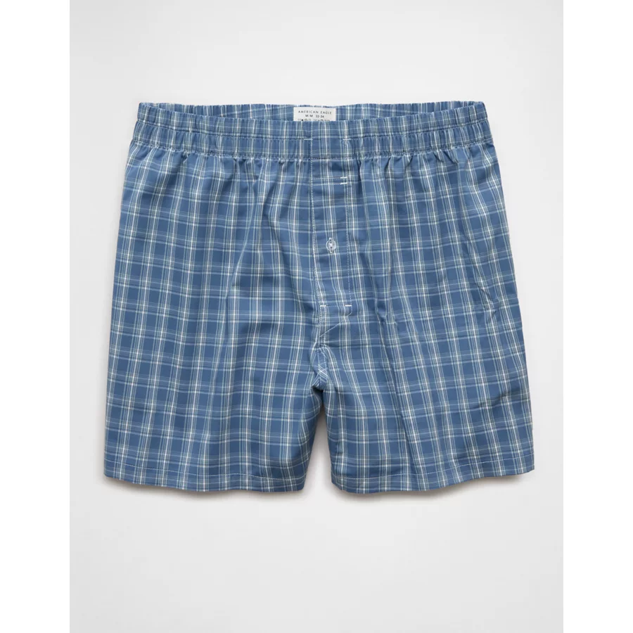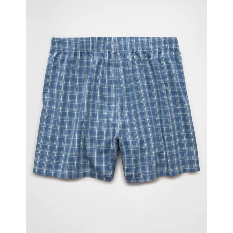 AEO Men's Plaid Poplin Pocket Boxer Short - Blue Path