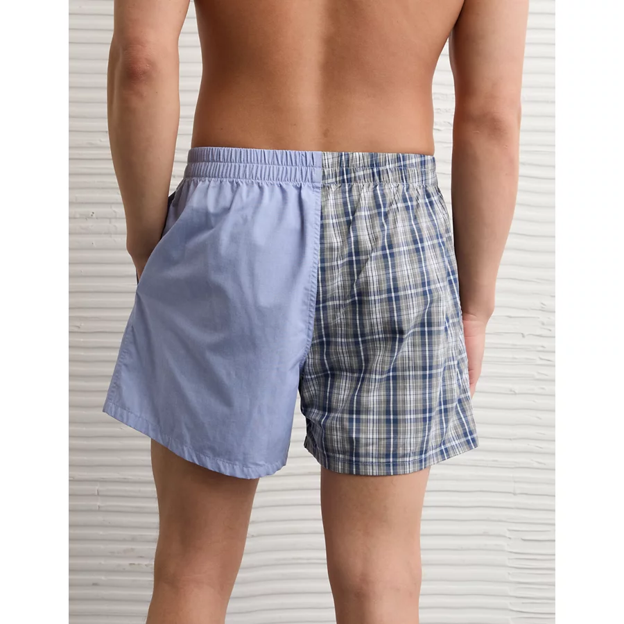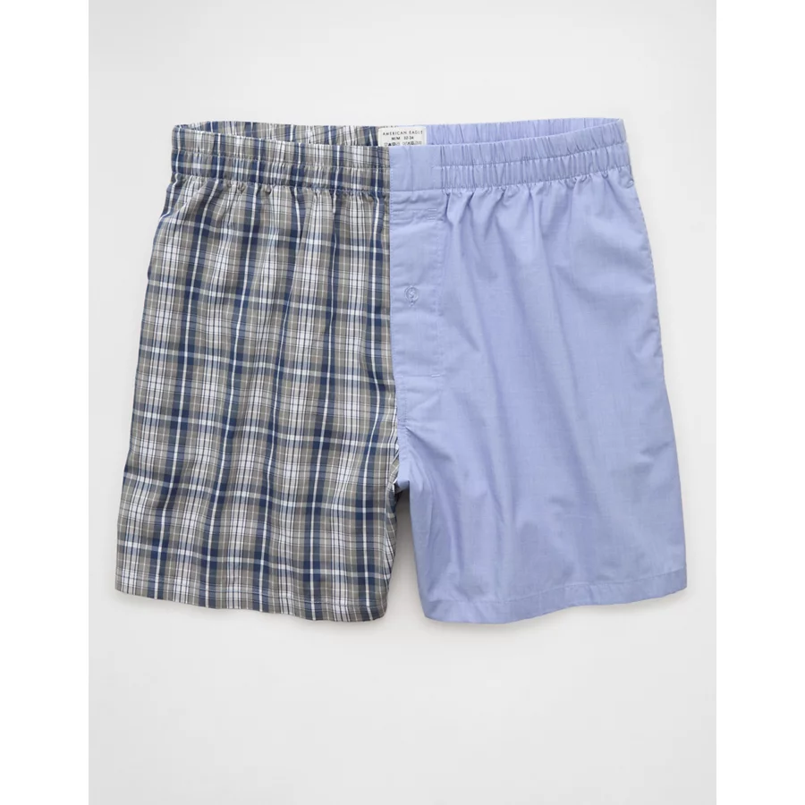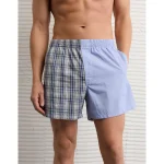 AEO Men’s Plaid Stretch Poplin Pocket Boxer Short – Blue Powder