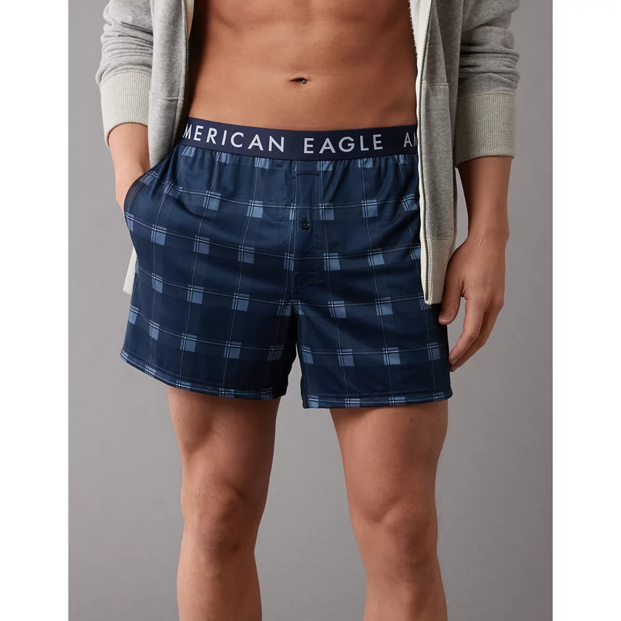 AEO Men’s Plaid Ultra Soft Boxer Short – Rich Navy