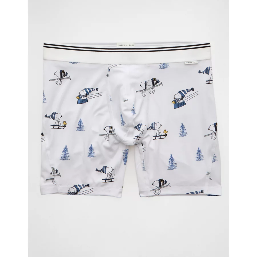 AEO Men’s Snoopy Skier 6″ Ultra Soft Boxer Brief – White