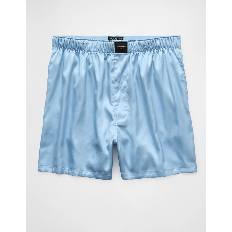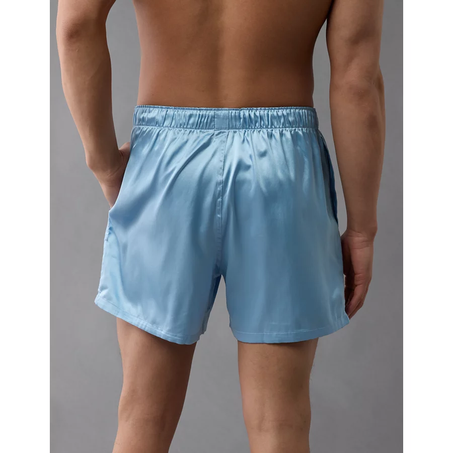 AEO Men’s Solid Satin Pocket Boxer Short – Blue Breeze