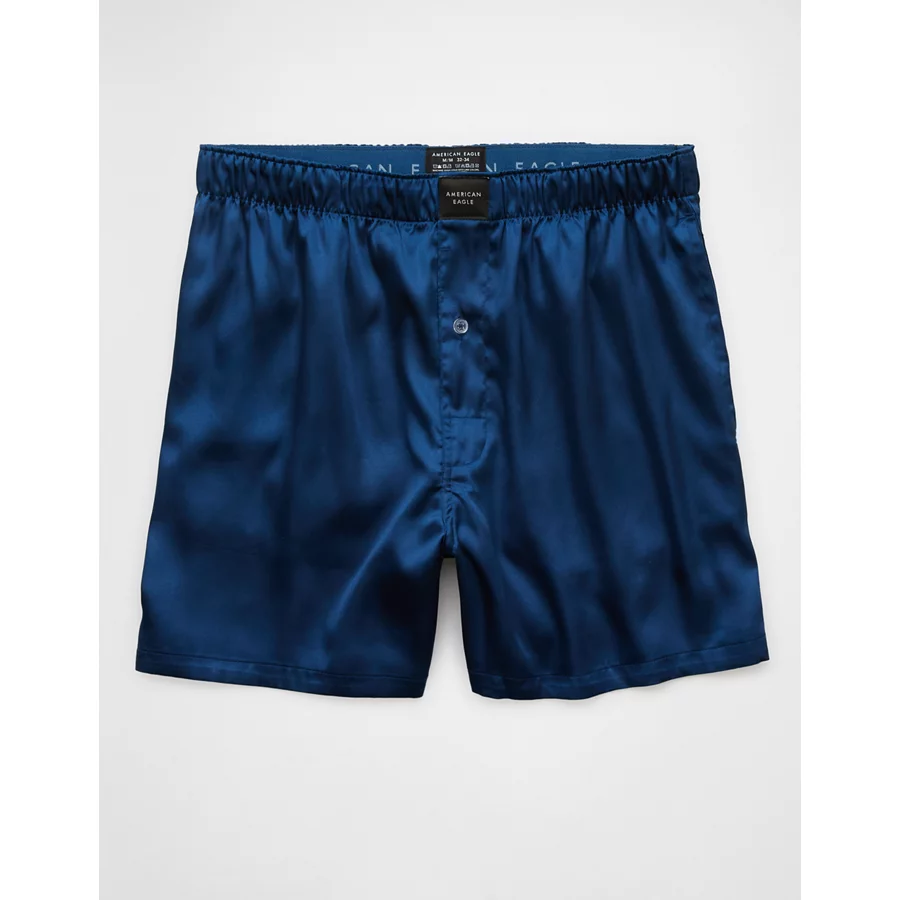 AEO Men’s Solid Satin Pocket Boxer Short – Blue