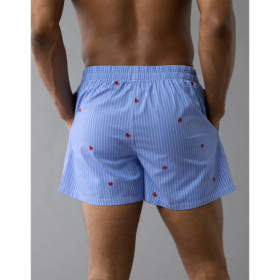 AEO Men’s Striped Hearts Poplin Pocket Boxer Short – Blue