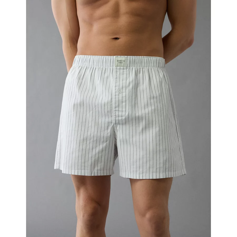 AEO Men's Striped Satin Pocket Boxer Short - Khaki