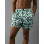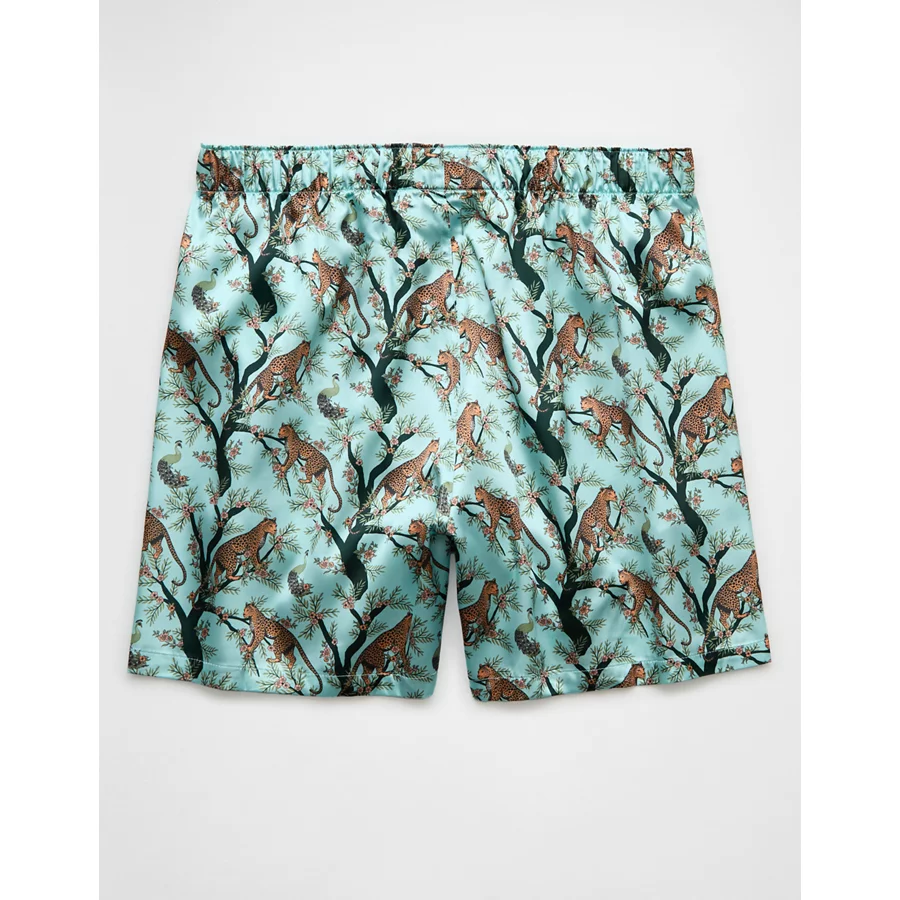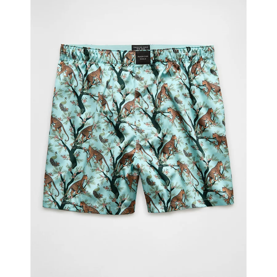 AEO Men’s Tropical Leopards Satin Pocket Boxer Short – Light Blue