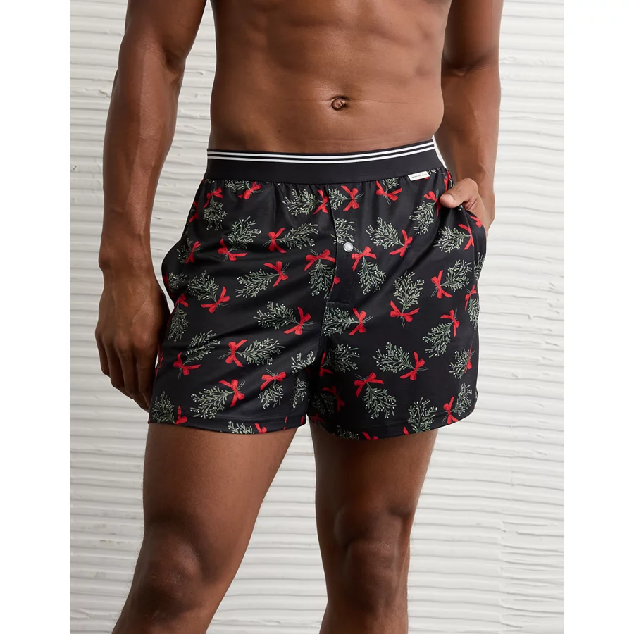 AEO Men’s Ultra Soft Mistletoe Pocket Boxer Short – Navy