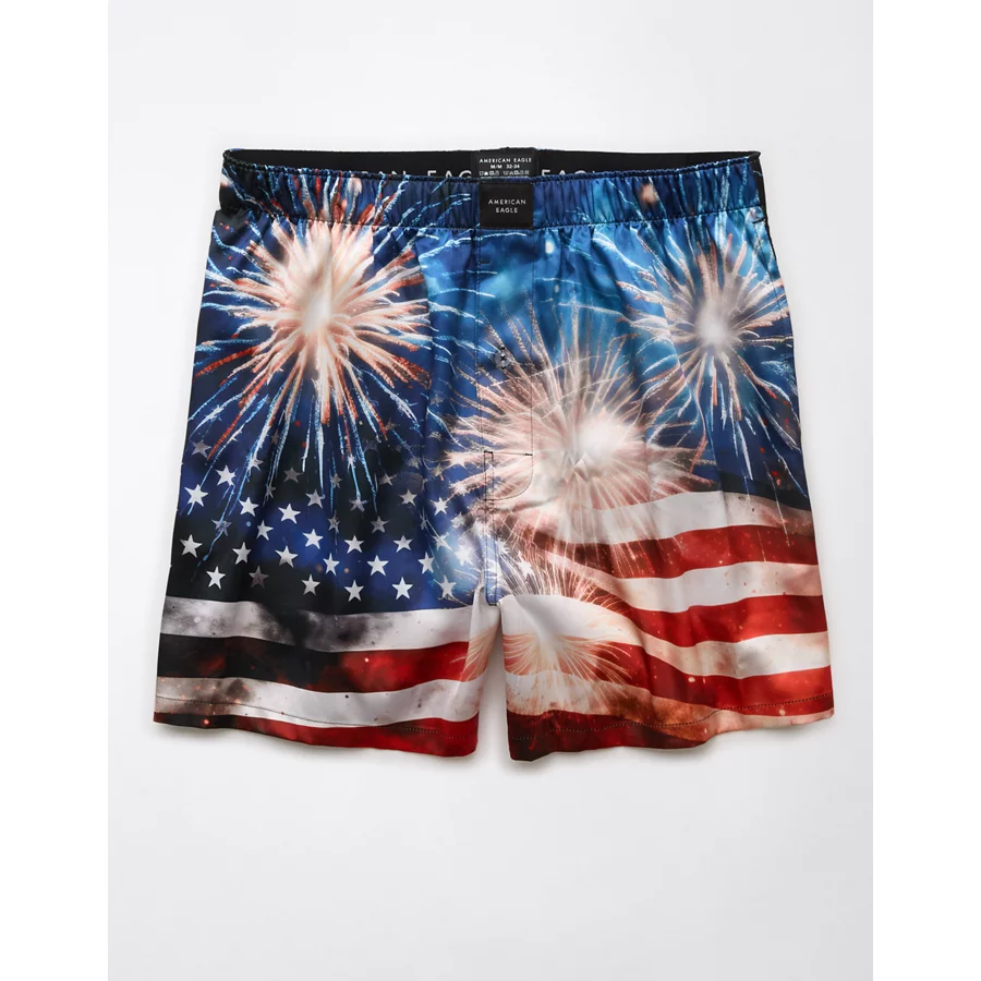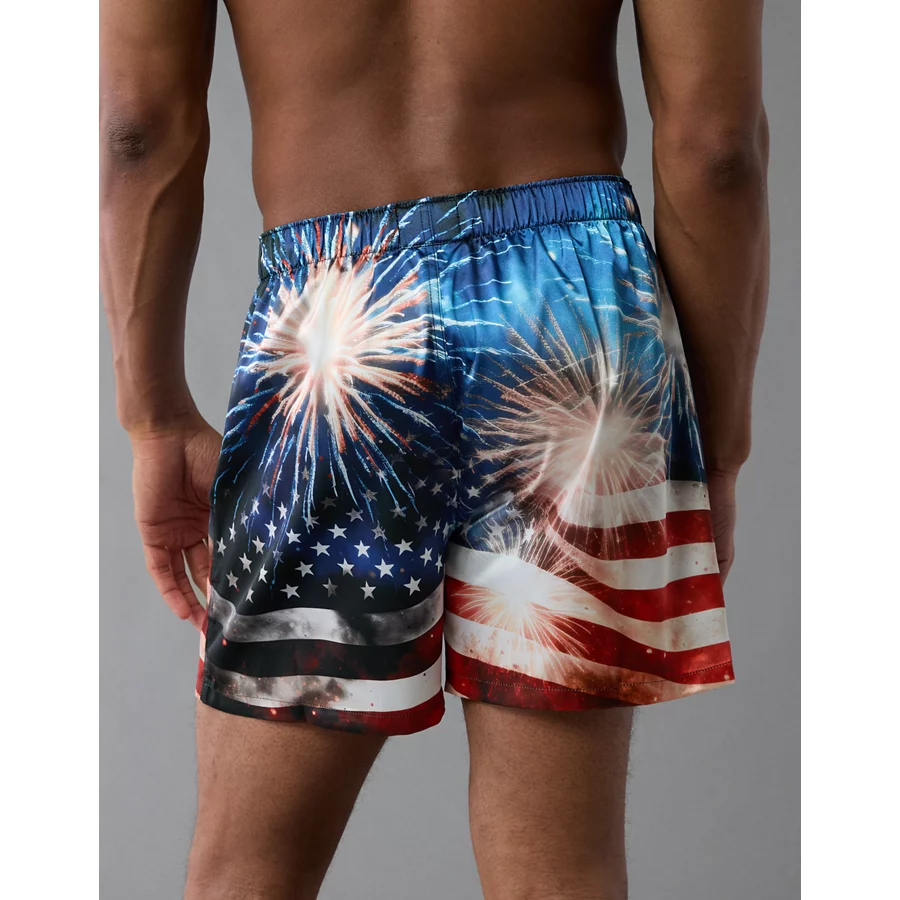 AEO Men’s USA Fireworks Satin Pocket Boxer Short – Blue