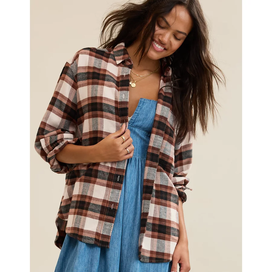 Aerie Anytime Fave Flannel Button Down Shirt – Sandbar