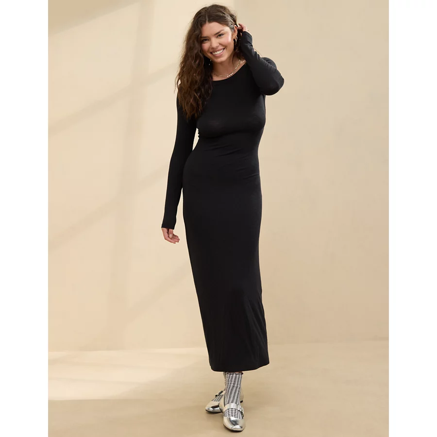 Aerie Bodycon Low Back Maxi Dress – True Black