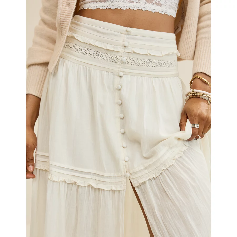 Aerie Boho Button Maxi Skirt - Monaco Blue