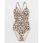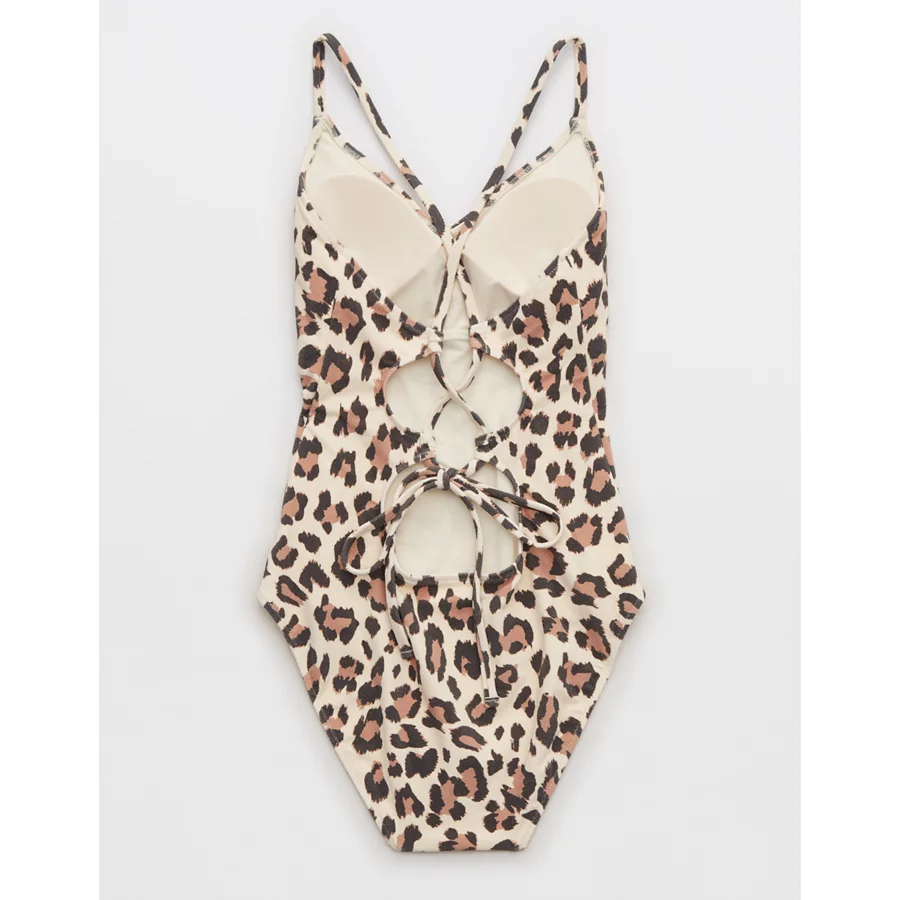 Aerie Buzzed Terry Leopard Strappy Back One Piece Swimsuit – Vintage Vanilla
