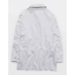 Ribbed trim on the collar, placket, pocket, cuffs, and back