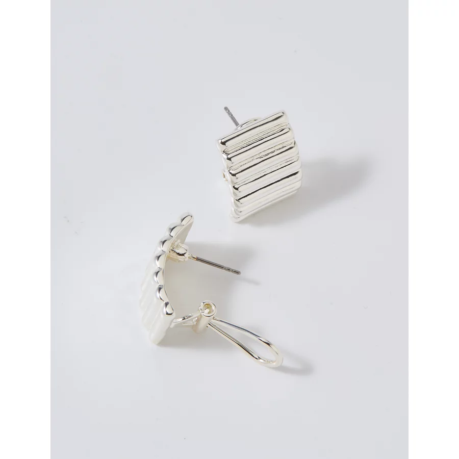 Aerie Chunky Fluted Hoop Earrings – Silver