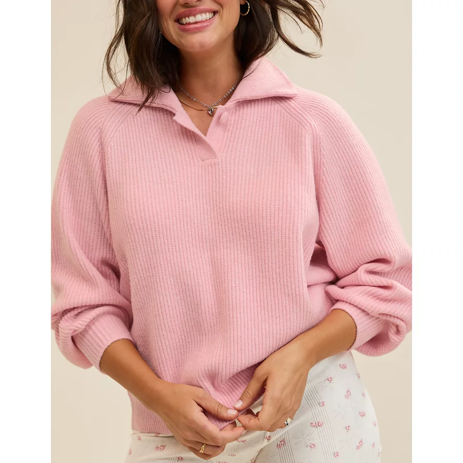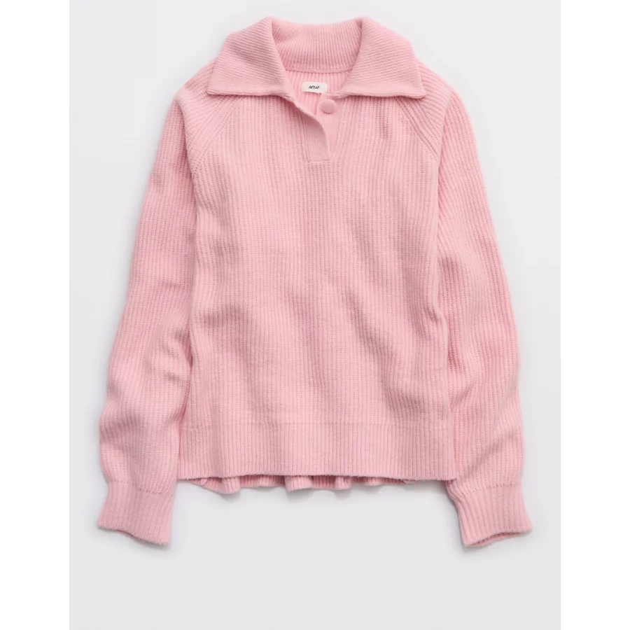 Aerie Classic Quarter Button Sweater – Club Pink