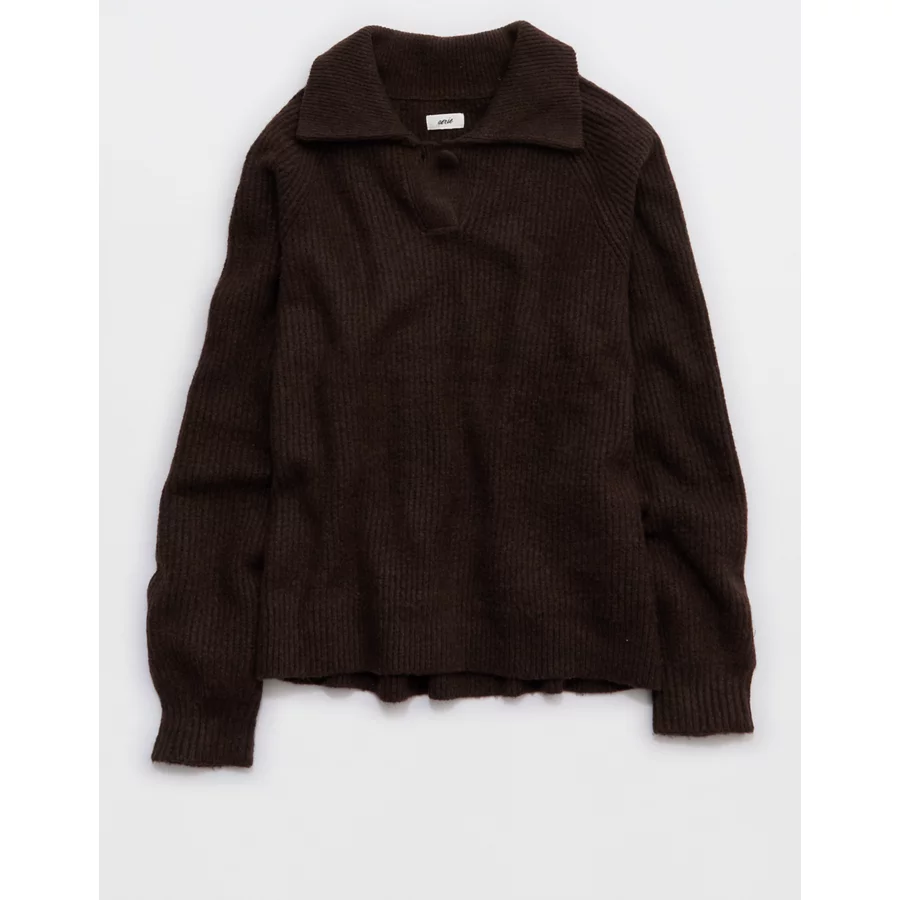 Aerie Classic Quarter Button Sweater – Deep Earth