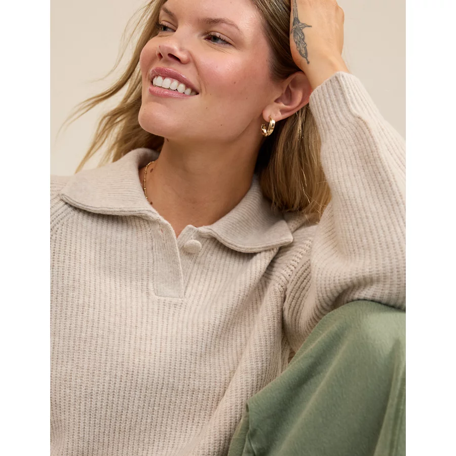Aerie Classic Quarter Button Sweater – Heather Fawn