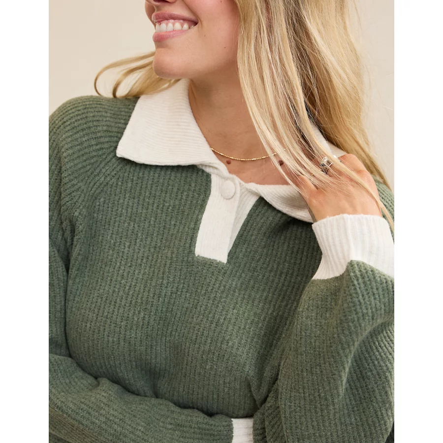 Aerie Classic Quarter Button Sweater – Olive Fun