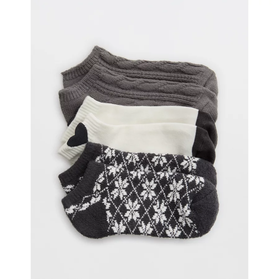 Aerie Cozy Ankle Socks 3-Pack – Smoked Gray