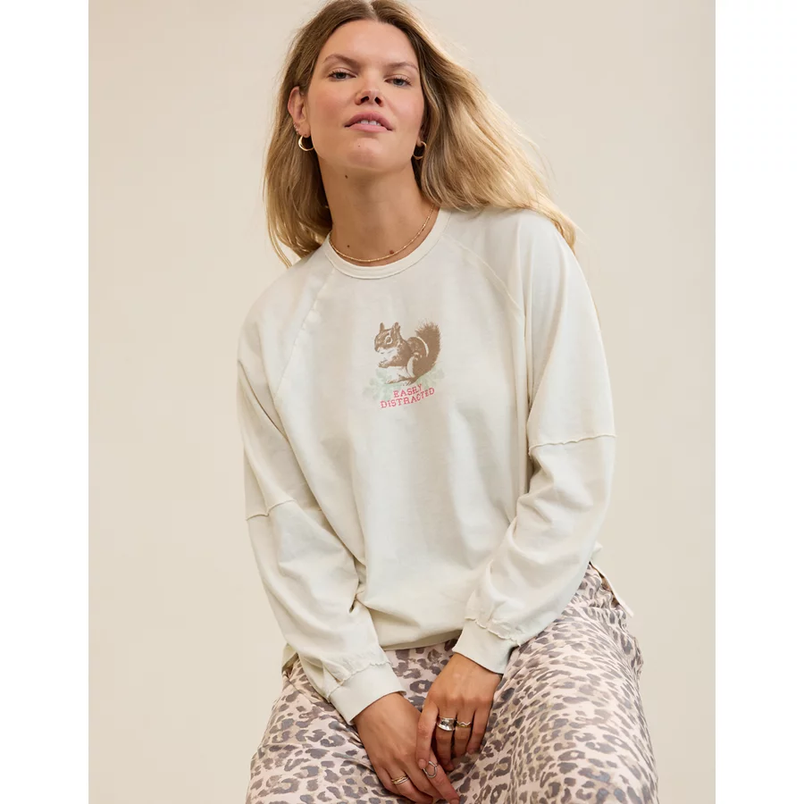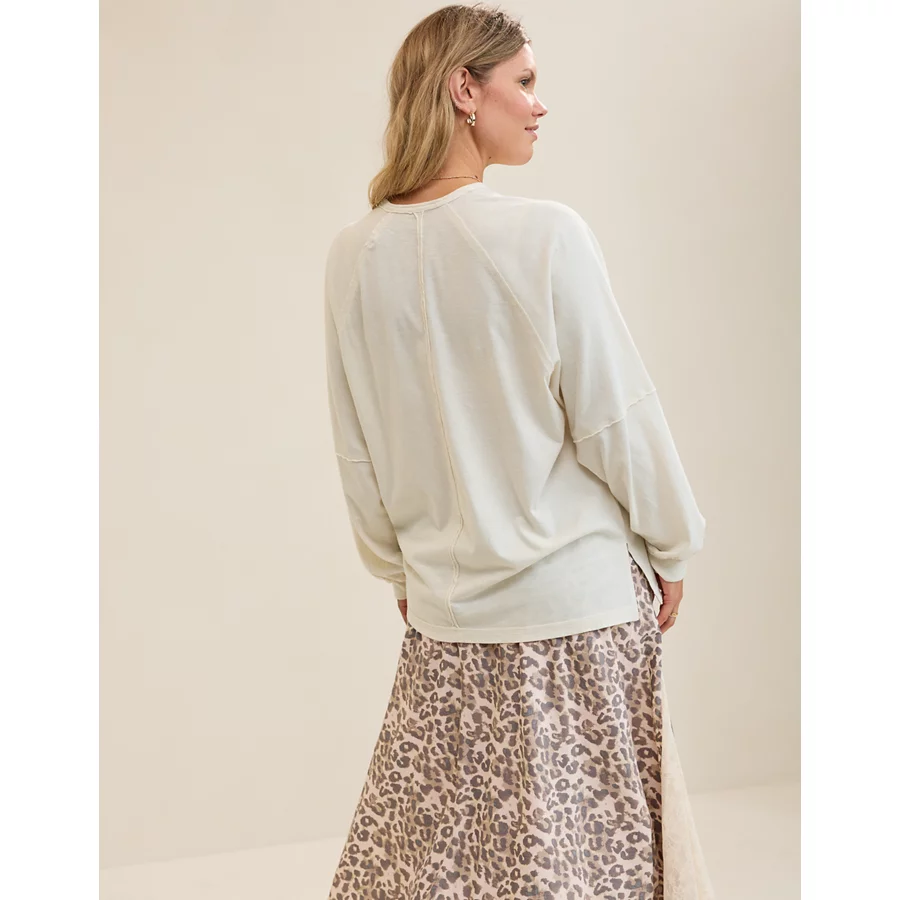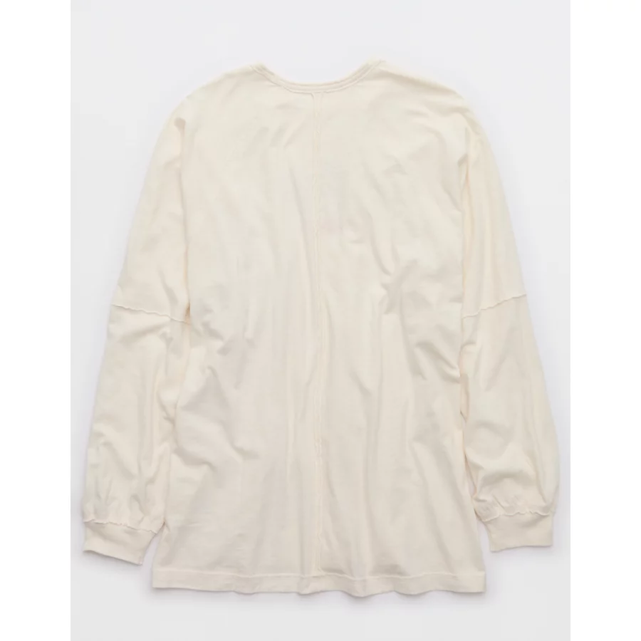 Aerie Cozy Long Sleeve Oversized Boyfriend T-Shirt - Frosty Cream