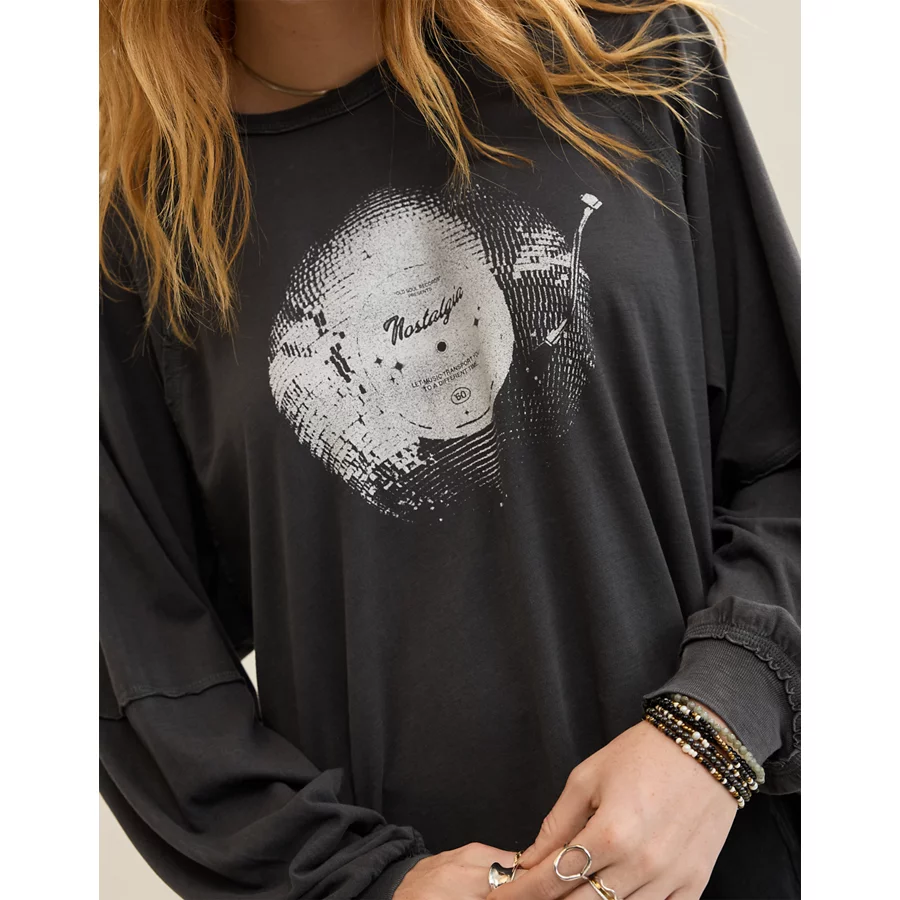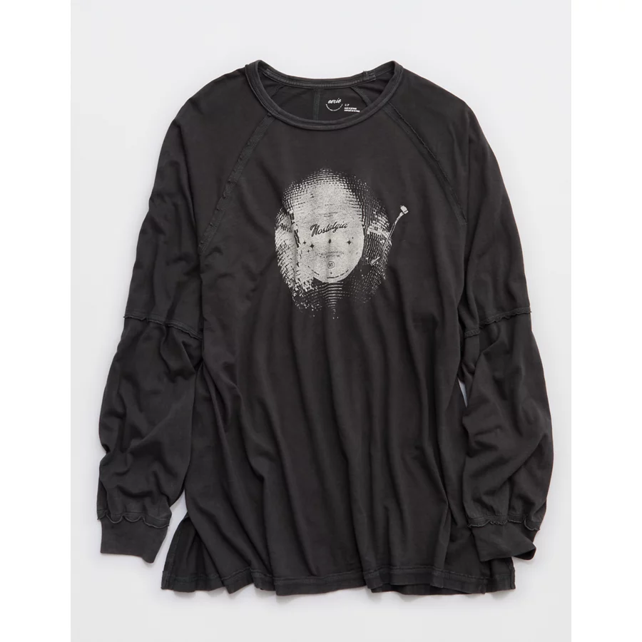 Aerie Cozy Long Sleeve Oversized Boyfriend T-Shirt – Smoked Gray