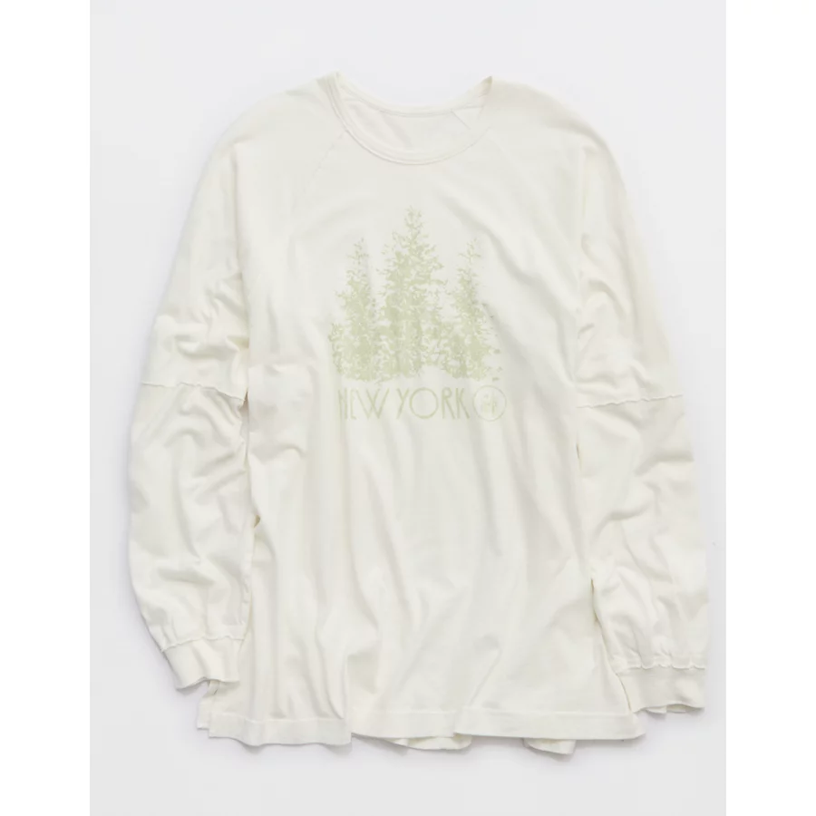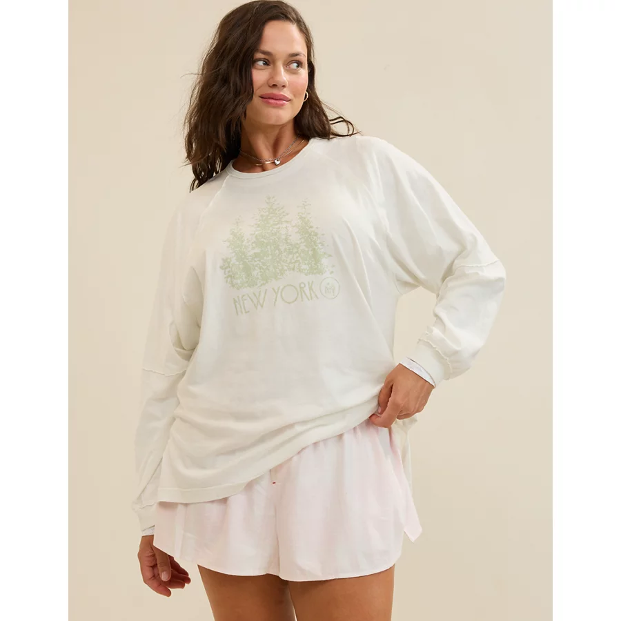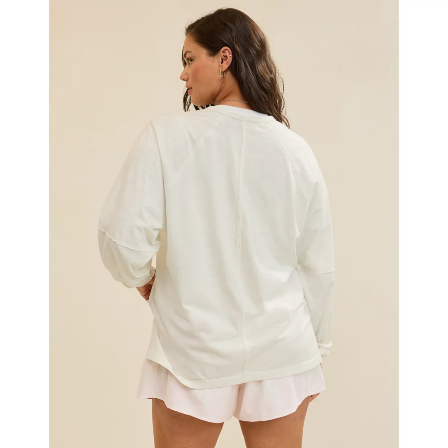 Aerie Cozy Long Sleeve Oversized Boyfriend T-Shirt – Soft Muslin