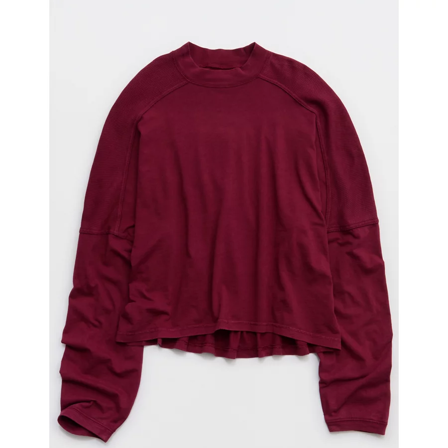 Aerie Cozy Mock-Neck T-Shirt – Deep Cherry