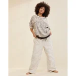 Real Good Everyday yarnRolled necklineRibbed trim on cuffs and hemPointelle deets and split cuffs on the sleevesStripedAccessibility deets: over-the-head access