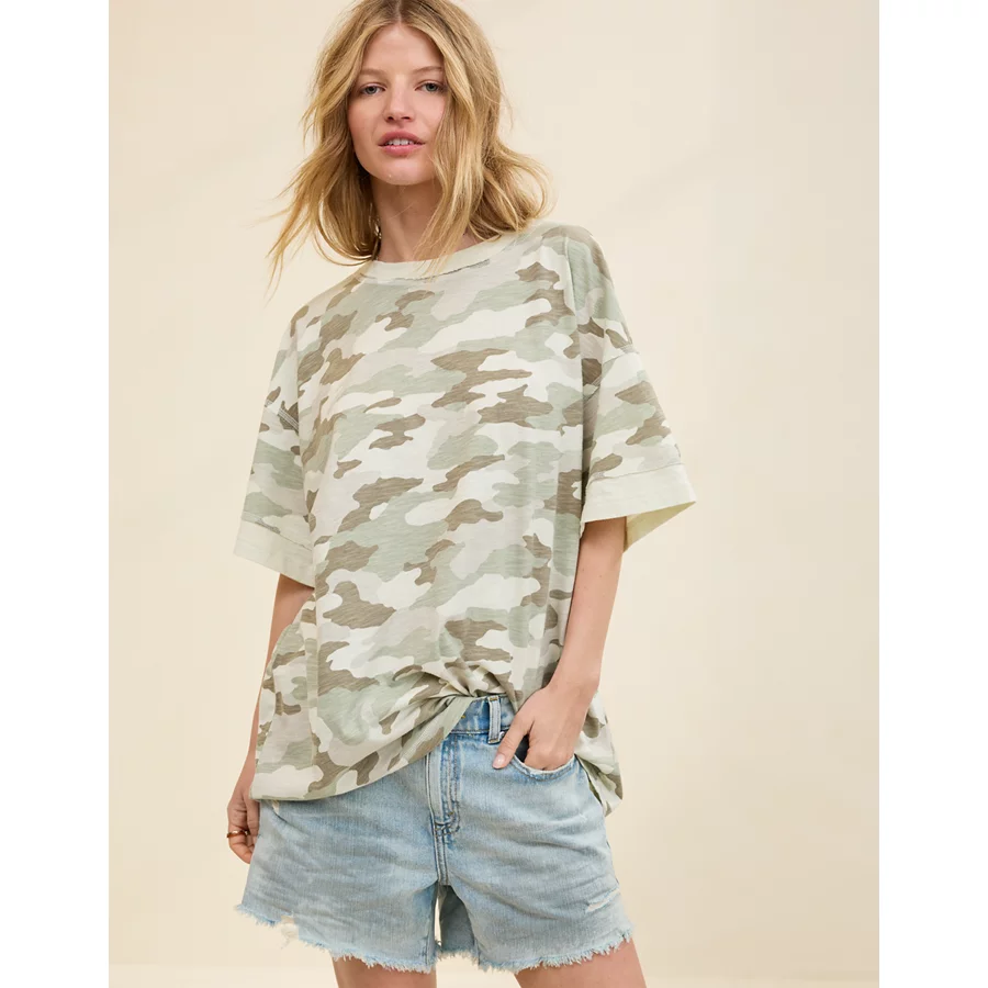 Aerie Crew Oversized Boyfriend T-Shirt – Olive Fun