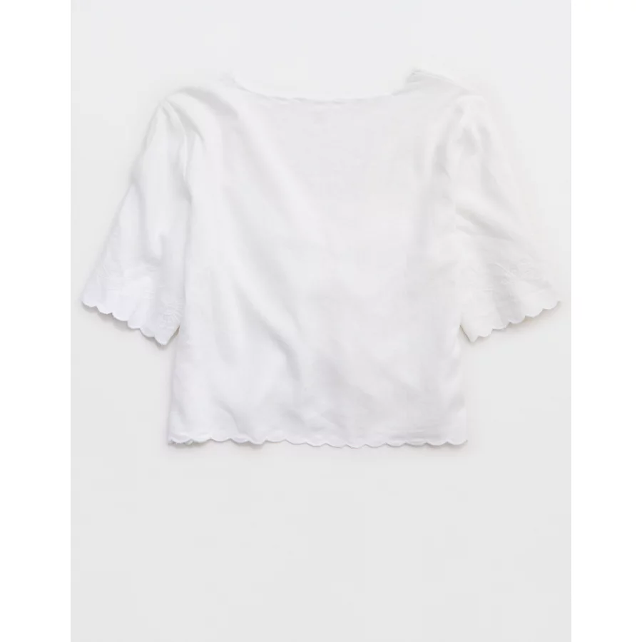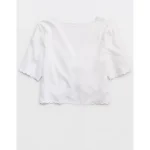 Aerie Cropped Cinch Front Top – White