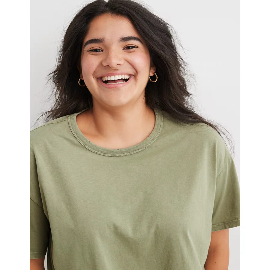 Aerie Distressed Basic Boyfriend T-Shirt – Faded Olive