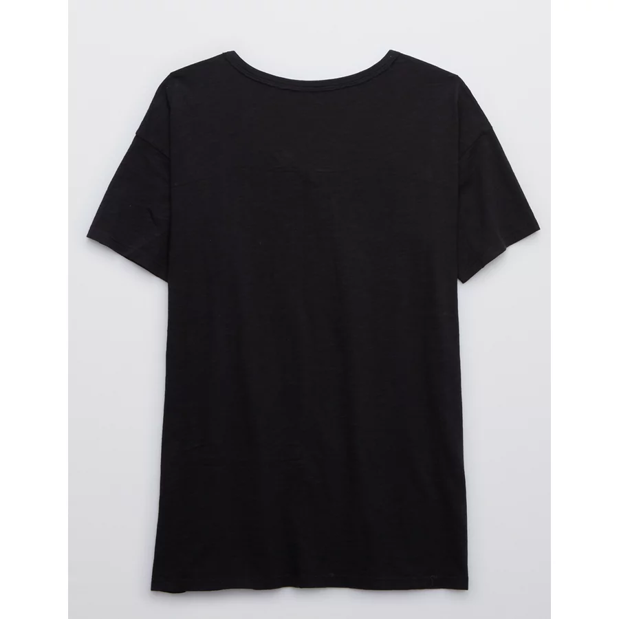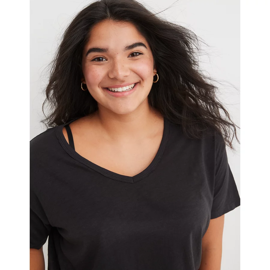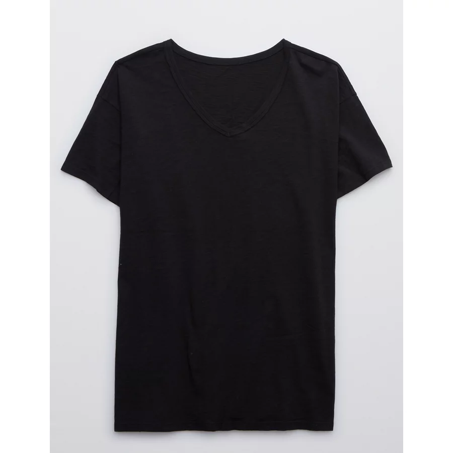 Aerie Distressed Basic V-Neck Boyfriend T-Shirt – True Black