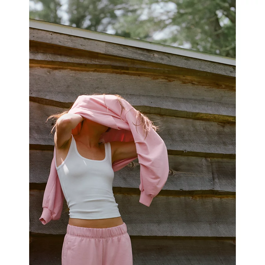 Real Good Everyday yarnRolled necklineRibbed trim on cuffs and hemPointelle deets and split cuffs on the sleevesThis style is heathered