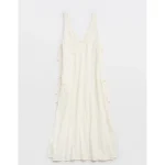 Lightweight gauze fabricAdjustable straps with tie backFlutter sleeve deetsElasticated V-waistSide seam pockets (!!)Accessibility deets: elastic waist, adjustable straps, and over-the-head