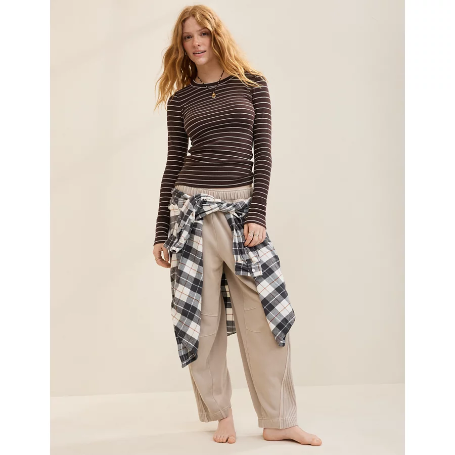 Aerie Bambi Real Soft Piping Trouser PJ – Smoked Gray