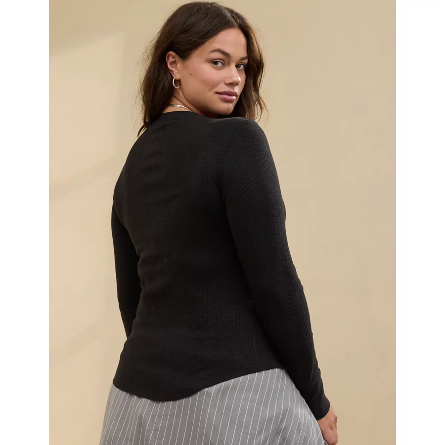 Aerie Essential Henley Layering T-Shirt - Military Green