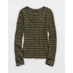 Aerie Essential Henley Layering T-Shirt – Military Green
