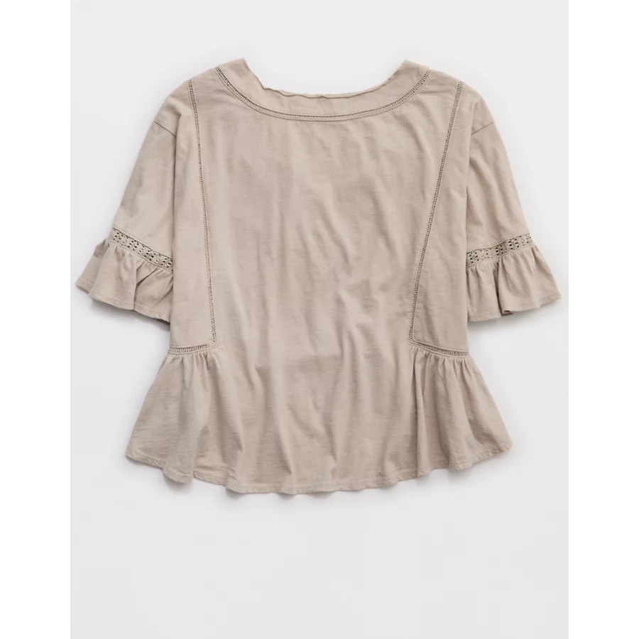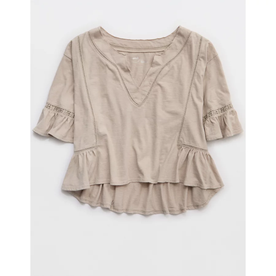 Aerie Flowy Cropped Notch Neck T-Shirt – Stone Harbor