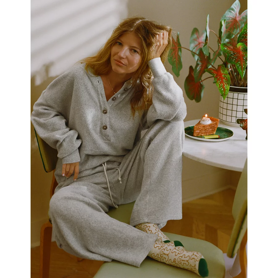 Aerie Bambi Real Soft® Piping Pajama Shirt – Smoked Gray