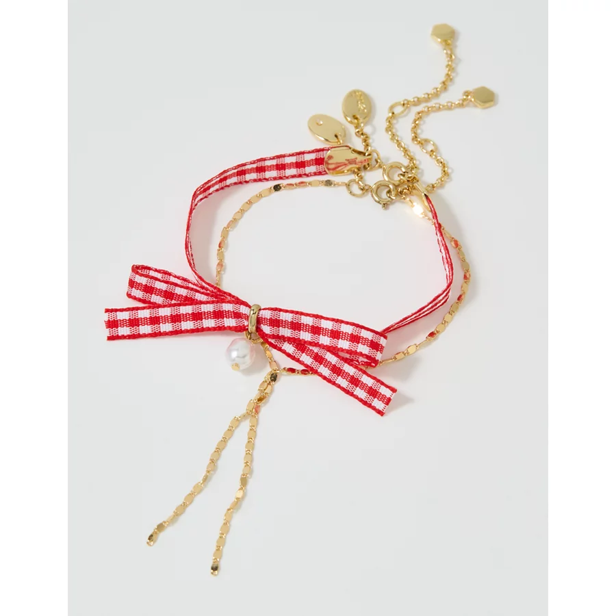 Aerie Gingham Bow Bracelet – Bright Red