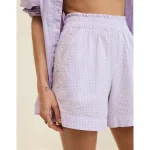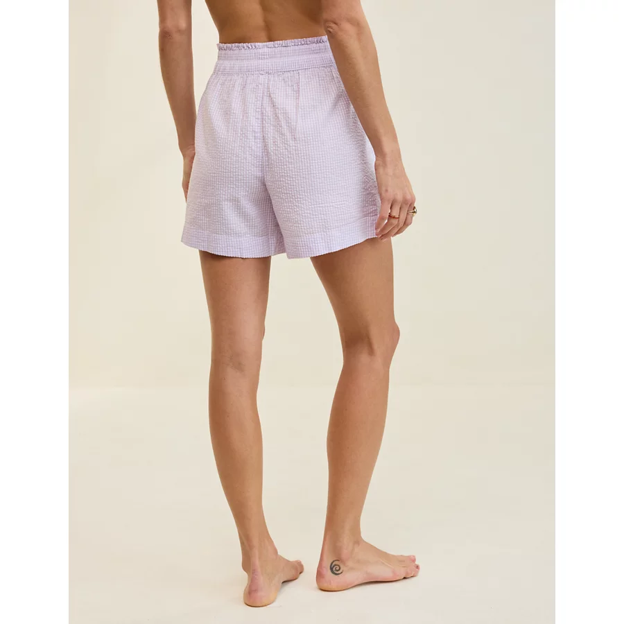 Lightweight, airy cotton poplin in stripesElastic paperbag waistFunctional button front with drawstringLined with boxer shorts 100% CottonMachine washImported Mini length